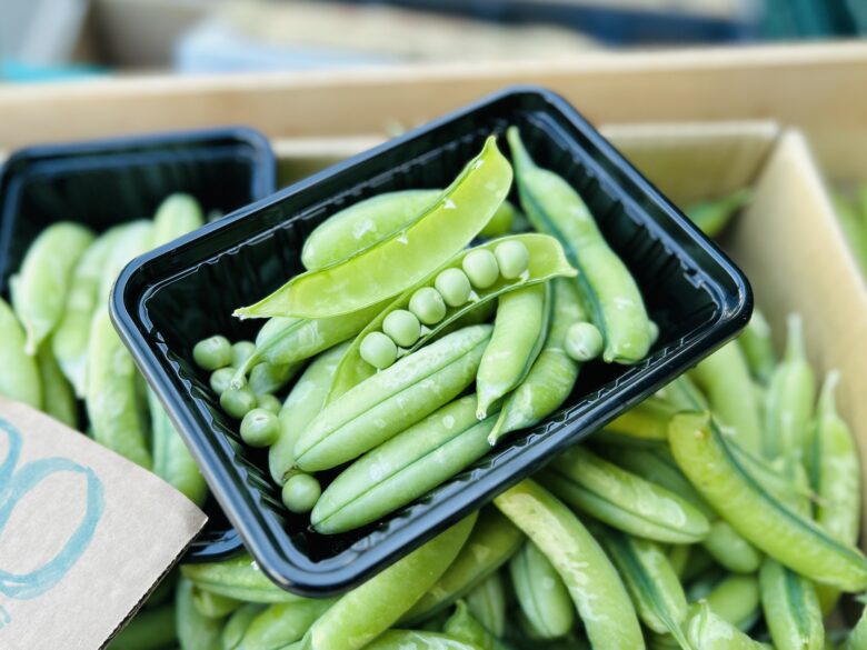 「スナップエンドウ」は、グリンピースをさやごと食べられるように品種改良したもので、肉厚で甘みが強いです。スナップエンドウは、1970年代から日本で出回るようになった品種です。